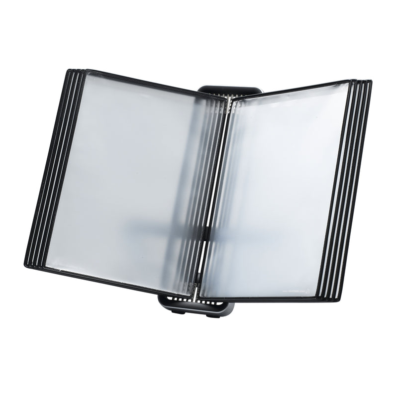 Ce produit est idéal pour les travailleurs indépendants, les travailleurs à domicile et les petits bureaux qui ont besoin d'un lieu de travail organisé et efficace. Le système contient 10 panneaux de visualisation à charnières noirs en PP A4, parfaits pour présenter clairement des documents. Un bureau
