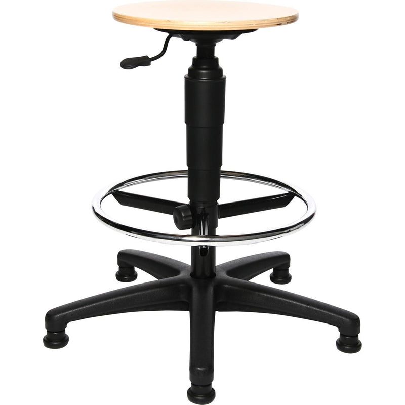Topstar - Tabouret Top Tec 60, avec repose-pieds chromé, avec capuchons de réglage, bois