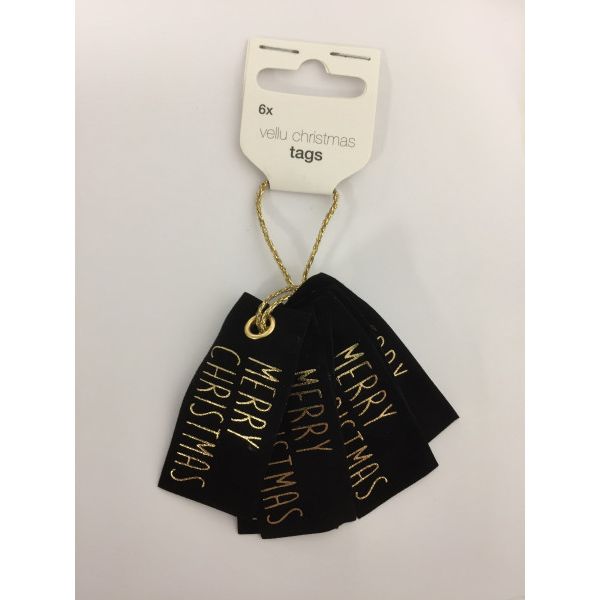 Vellu - Étiquettes noires Joyeux Noël 6 pièces