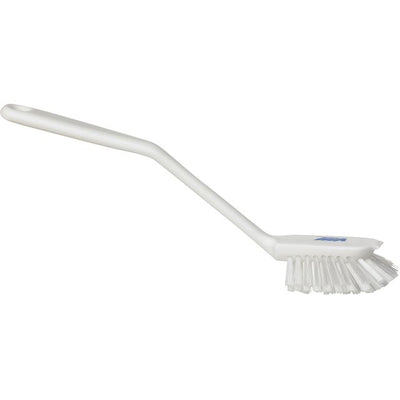 - Vikan afwasborstel met wijd uitstaande, mediumharde vezels en een handige schraaprand voor een effectieve reiniging.