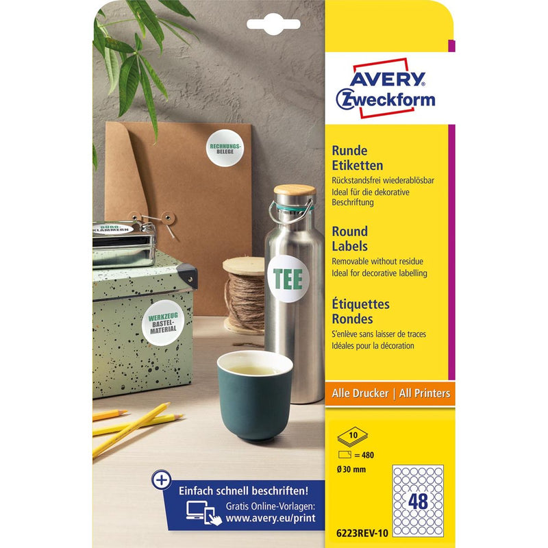 Avery Zweckform - Zweckform ronde etiketten, diameter 30 mm, wit, afneembaar, 480 etiketten, 10 vellen