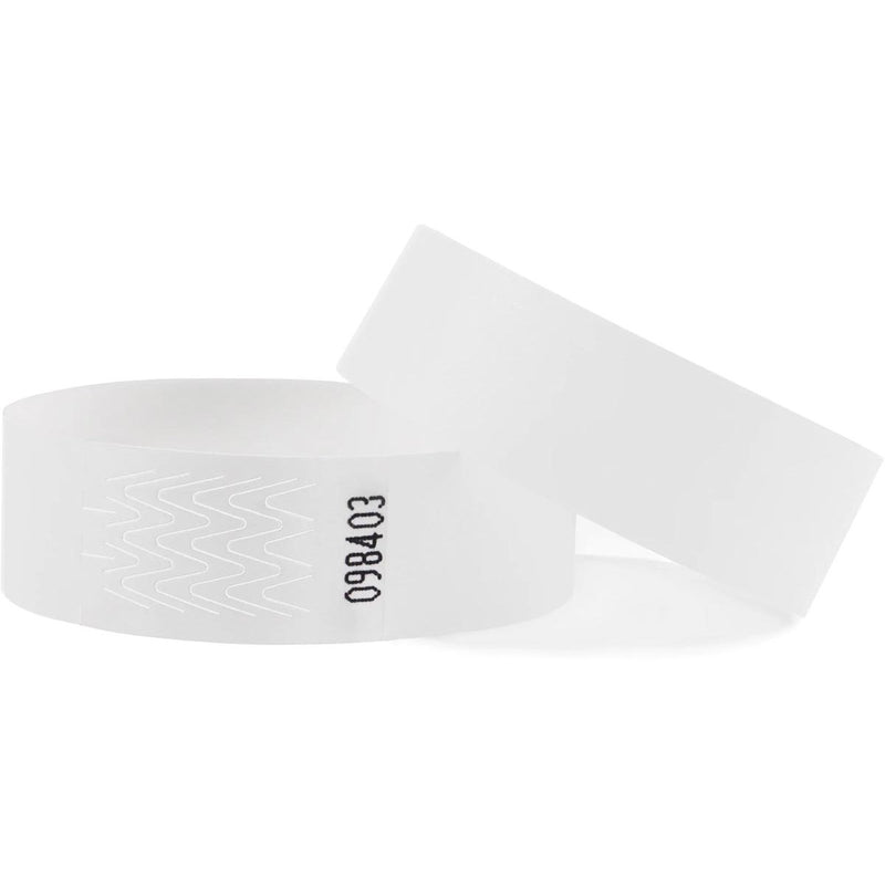 Tyvek polsbandjes Zowel voor volwassenen als kinderen Voorzien van een doorlopende nummering Met sterke plakstrook Met watervaste viltstift of pen te beschrijven Ft 1,9 x 25 cm Pak van 100 stuks