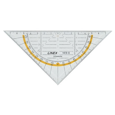 *Kan worden gebruikt voor arcering, het meten van hoeken, het maken van loodlijnen en het tekenen van geometrische vormen.