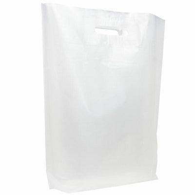 Ontdek de veelzijdigheid en duurzaamheid van onze witte DKT draagtassen. Met een royale afmeting van 37 cm breed en 44 cm hoog, plus een inslag van 2x4 cm, zijn deze tassen ideaal voor het efficiënt vervoeren van diverse producten. De stevige constructie van 50 micron LDPE plastic en het versterkte handvat zorgen voor betrouwbaarheid en gebruiksgemak, perfect voor dagelijks gebruik in kleine kantoren en door zzp’ers.