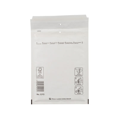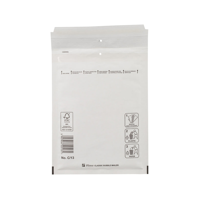 Verzend gemakkelijk en voordelig al je producten in deze stevige luchtkussen enveloppen van VIV! De buitenkant is gemaakt van sterk kraftpapier, terwijl de binnenzijde gevoerd is met noppenfolie. Deze combinatie zorgt voor een uitmuntende bescherming van al je producten.Deze witte C/13 luchtkussen enveloppen hebben een inwendige afmeting van 150 x 220 mm. Dankzij de zelfklevende sluiting heb je geen andere verpakkingsmaterialen nodig om de bubbel enveloppen te sluiten. Gemakkelijk en erg handig dus!Deze bubbel enveloppen C/13 zijn een milieuvriendelijke en duurzame keuze. Ze zijn namelijk FSC gecertificeerd (mix-credit), en dus deels vervaardigd uit gerecycled papier. De noppenfolie aan de binnenzijde is eveneens deels vervaardigd uit gerecycled kunststof. Dit betekent dat de totale envelop voor wel 70% vervaardigd is uit gerecyclede materialen. Uiteraard zijn de enveloppen zelf ook weer 100% recyclebaar. Hiertoe dient het papier van de noppenfolie gescheiden te worden, om vervolgens gedeponeerd te worden bij de juiste afvalstromen.C/13 Luchtkussen enveloppen:Zijn gemaakt van hoogwaardig wit kraftpapier en gevoerd met noppenfolieBieden een uitstekende bescherming aan je productenBeschikken over een handige zelfklevende sluitingZijn FSC gecertificeerd en voor 70% vervaardigd uit gerecyclede materialenDe verkoopeenheid is per doos. In een volle doos zitten 100 enveloppen. Op een volle pallet zitten 78 dozen (7.800 enveloppen)