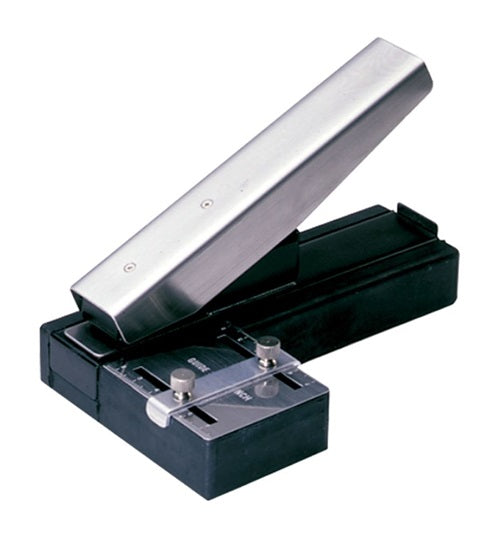 Hoe werkt deze sleuventang? Plaats eenvoudig het kaartje in de tang, stel de maatschuif in op de gewenste positie en knijp de tang samen om een perfect ovale sleuf te maken. Het is zo eenvoudig dat u binnen enkele seconden klaar bent.