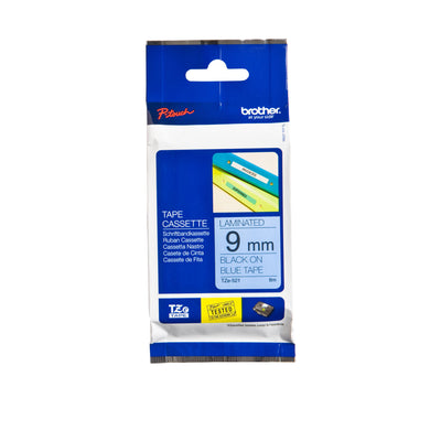 Brother - Labele P-touch TZe-521 standaard 9mm zwart op blauw