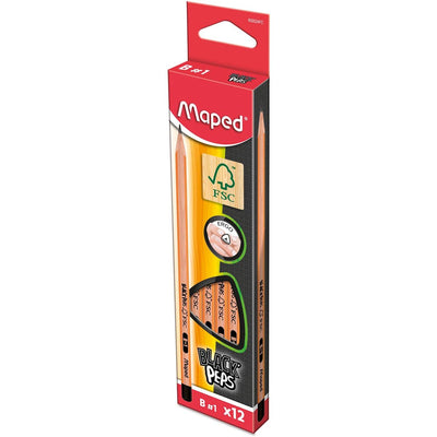 Let op! U moet ten minste 12 van Maped potlood Black'Peps B, zonder gumtegelijk kopen. De prijs die staat bij dit artikel is per stuk, op de afbeelding kunnen meerdere stuks afgebeeld staan. De afbeelding kan dus afwijken.