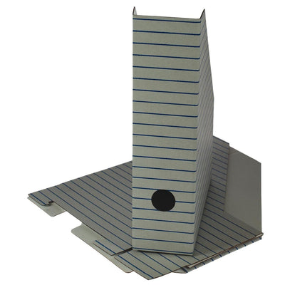 Ft 23 x 31 x 8 cm (d x h x b). Uit karton met blauwe, rode en groene strepen van 1 mm.