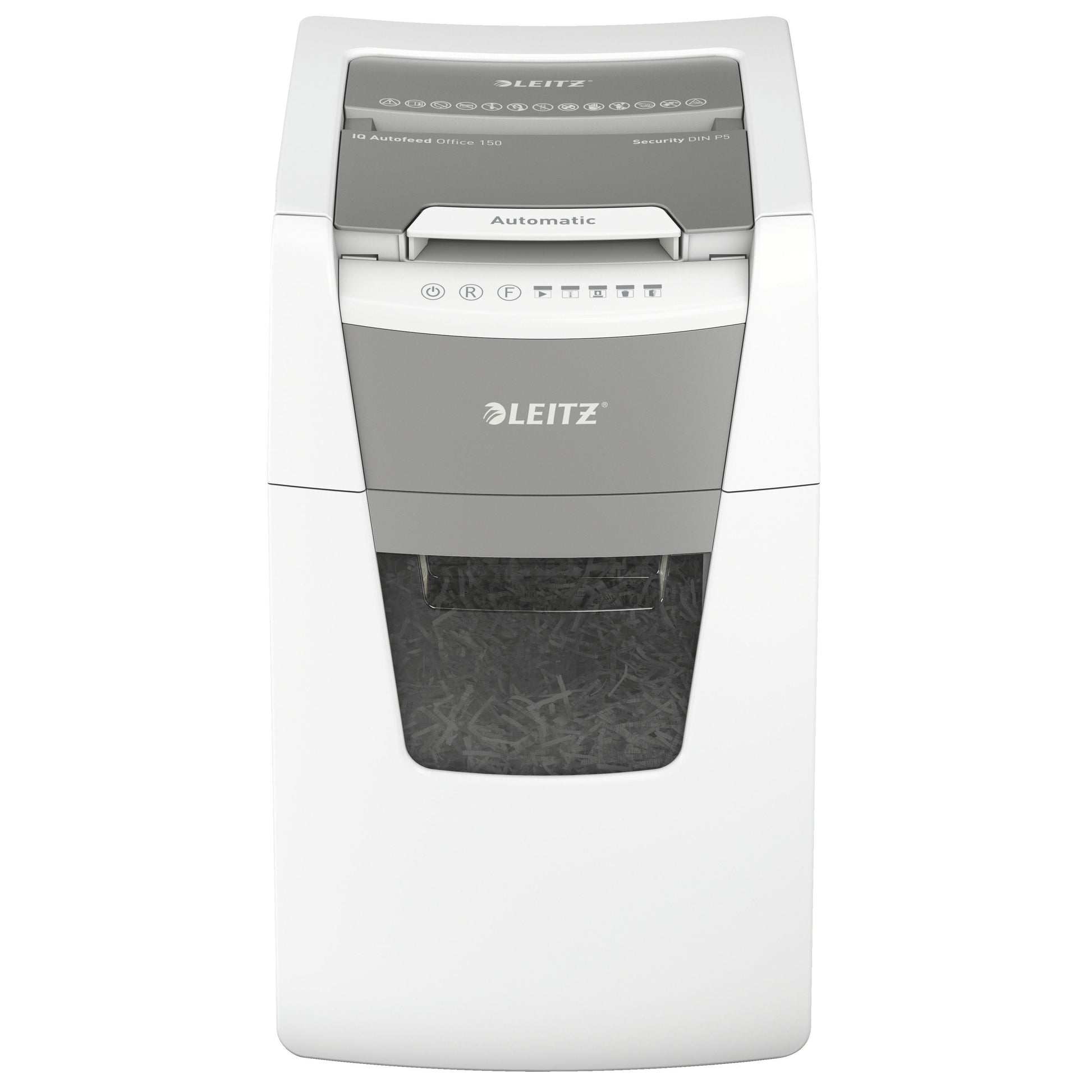 Volautomatische papiervernietiger met automatische invoerfunctie voor maximaal 150 A4-vellen.