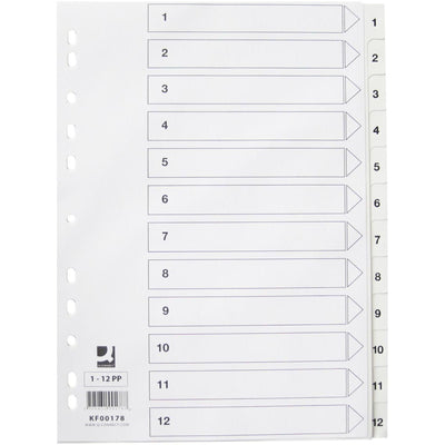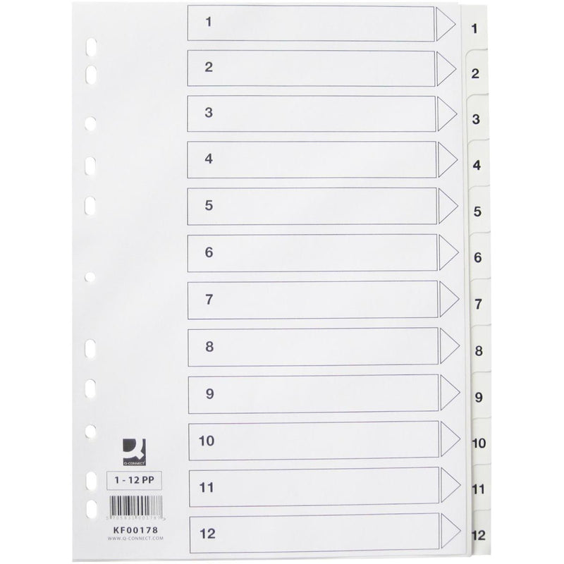 Q-CONNECT - tabbladen, A4, PP, 11-gaatsperforatie, met indexblad, set van 1-12, wit