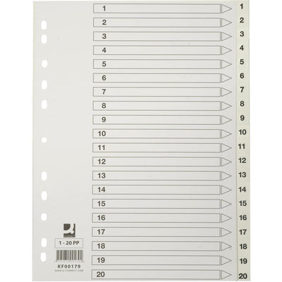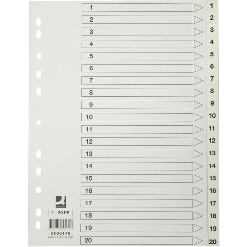 Q-CONNECT - tabbladen, A4, PP, 11-gaatsperforatie, met indexblad, set van 1-20, wit