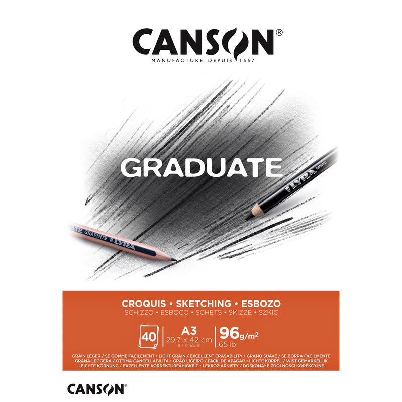 Canson - Schetspapier Graduate Sketch 40vel 96gr A3 natuurlijk wit