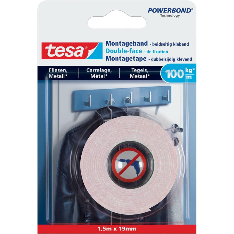 Tesa - Powerbond montagee Tegels en Metaal, 19 mm x 1,5 m