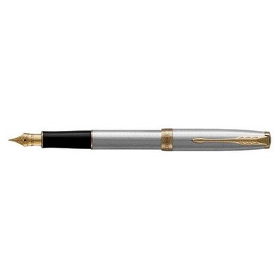 *De vulpen is gecomplementeerd met vergulde afwerkingen en een edelstalen penpunt, bedekt met een vergulde afwerking.