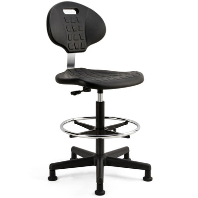 Deze werkstoel is uitgevoerd met een zitting en rugleuning van hoogwaardig PU, wat zorgt voor een comfortabele en ondersteunende zitervaring. Dankzij de in hoogte verstelbare gasveer kan de stoel eenvoudig worden aangepast aan verschillende werkhoogtes, variërend van 55,0 cm tot 81,0 cm. Dit maakt de stoel geschikt voor diverse kantoorgebruiken, van bureaus tot hoge werktafels.